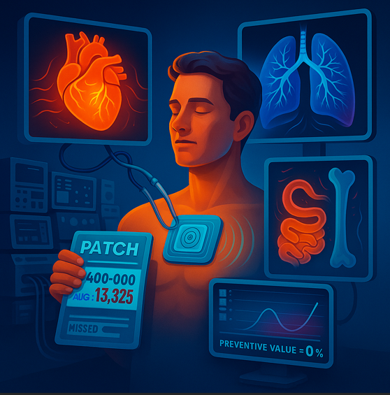 No iodinated contrast (linked to nephropathy and allergic reactions) ; no ionising CT exposure (projected to drive ≈ 5 % of new U.S. cancers) The patch is simply applied to skin—nothing enters the body. - Next‑day insight at a fraction of the cost.